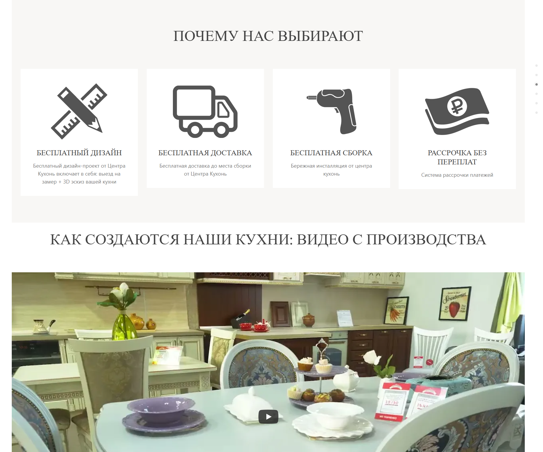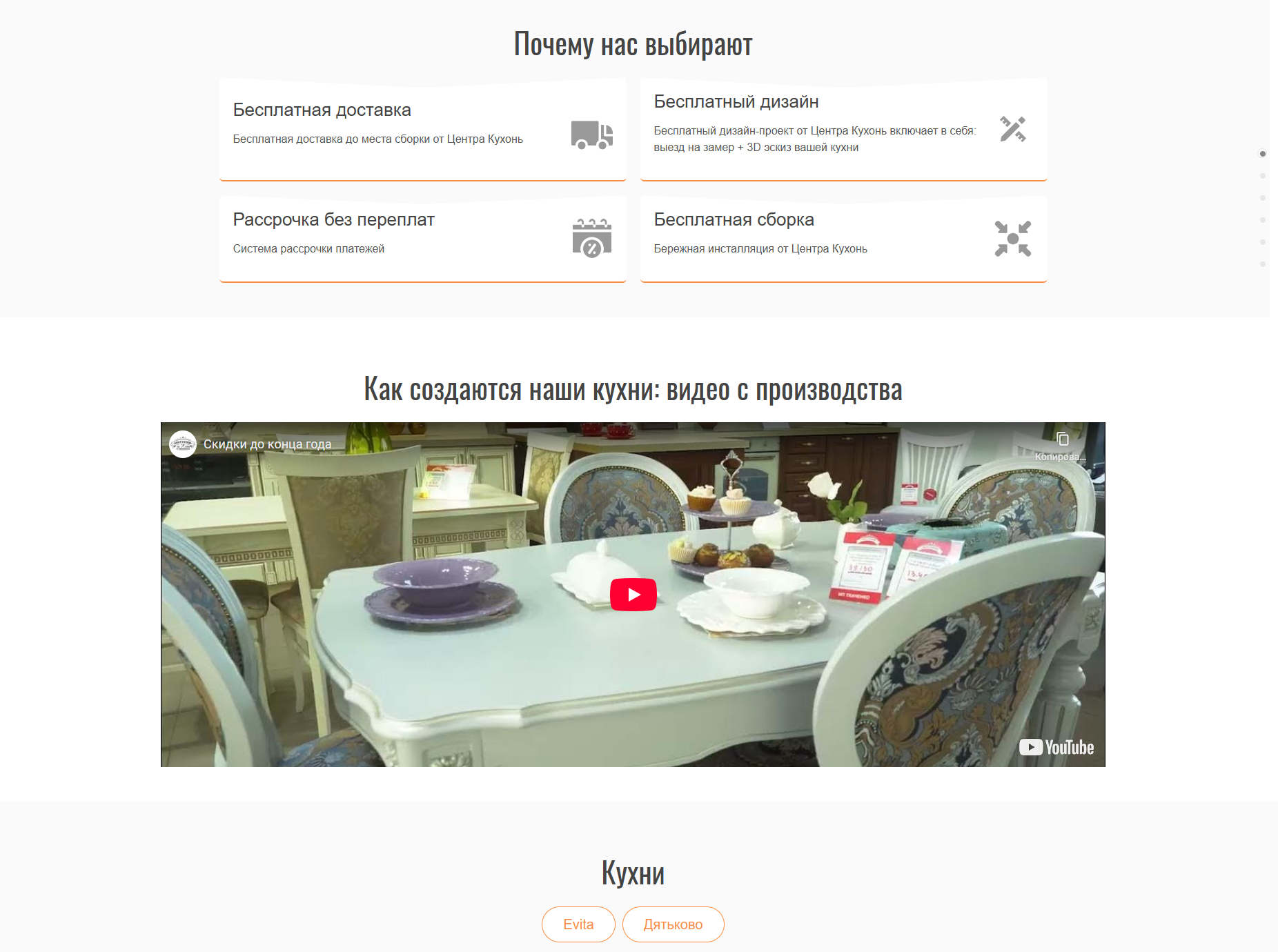 - Было: главная страница перегружена блоками и повторяющейся информацией. Акценты расплывались, пользователям было сложно быстро найти нужные модели кухонь.