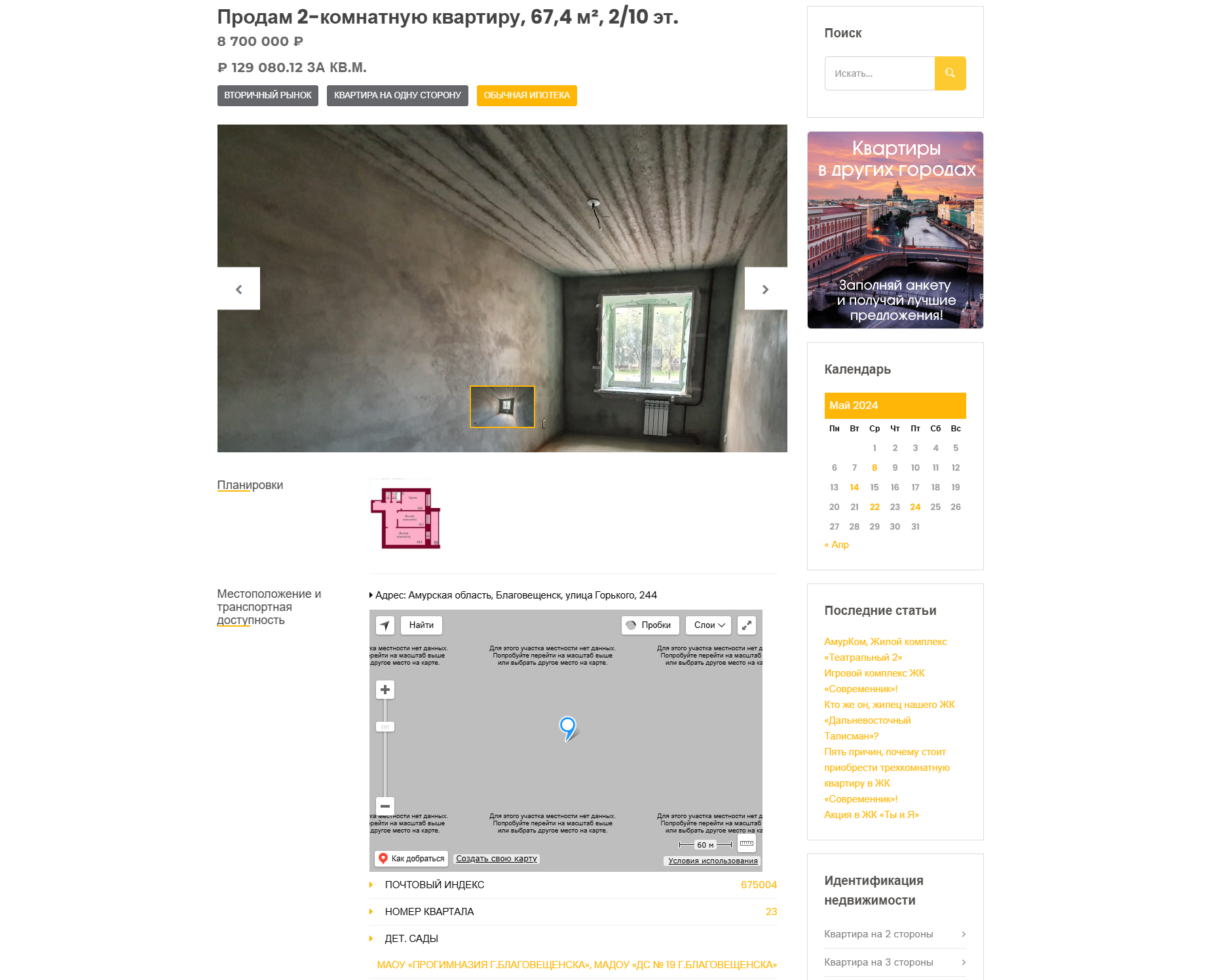 - Было: карточка квартиры с устаревшей версткой и перегруженным боковым блоком. Фото и информация о планировке терялись, пользователям было неудобно просматривать детали.