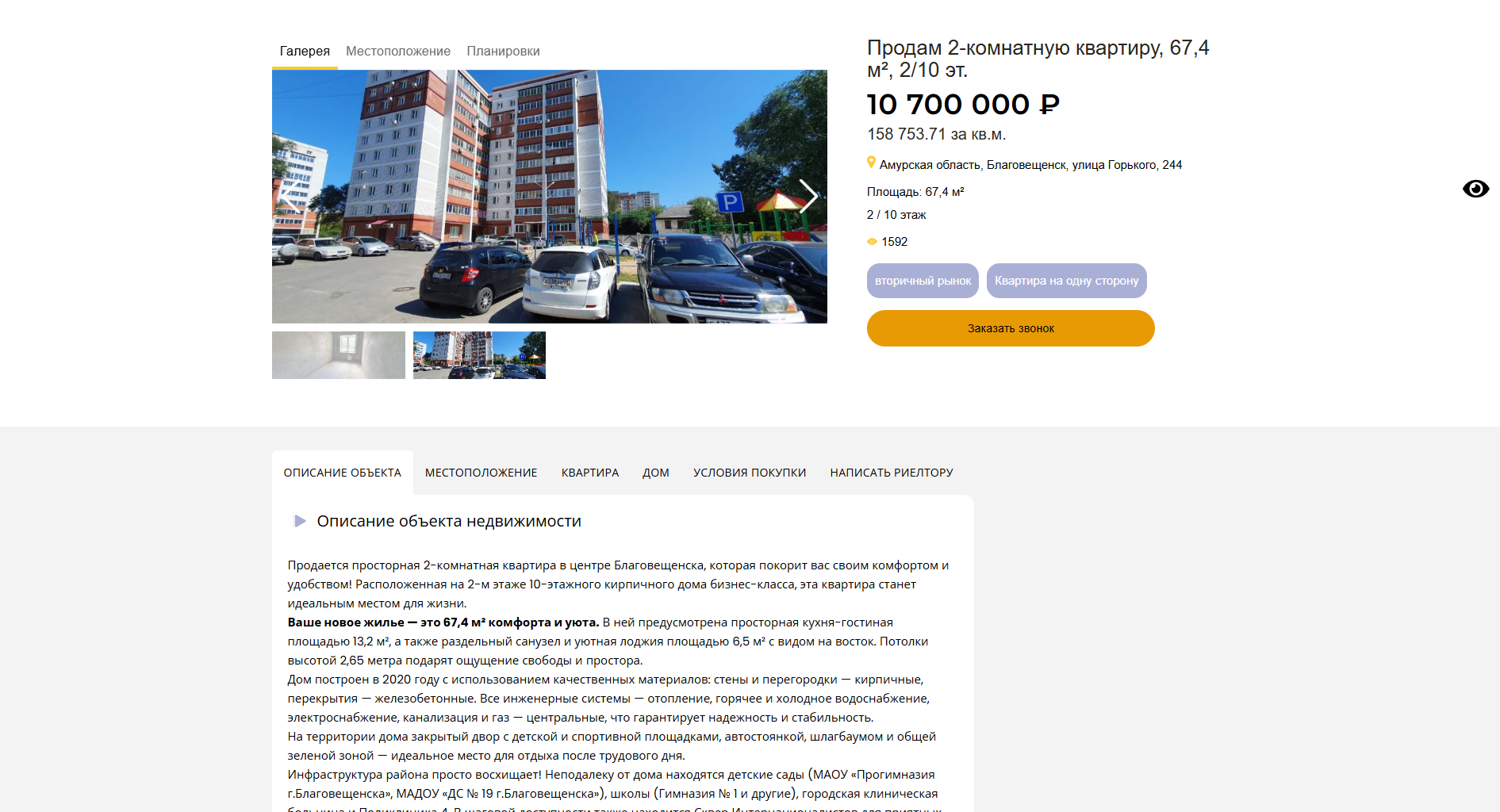 - Результат: улучшение восприятия объявлений, рост количества просмотров и повышение интереса к объектам среди покупателей.